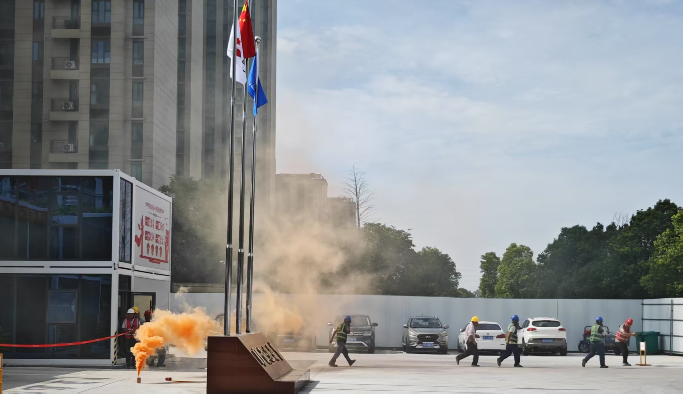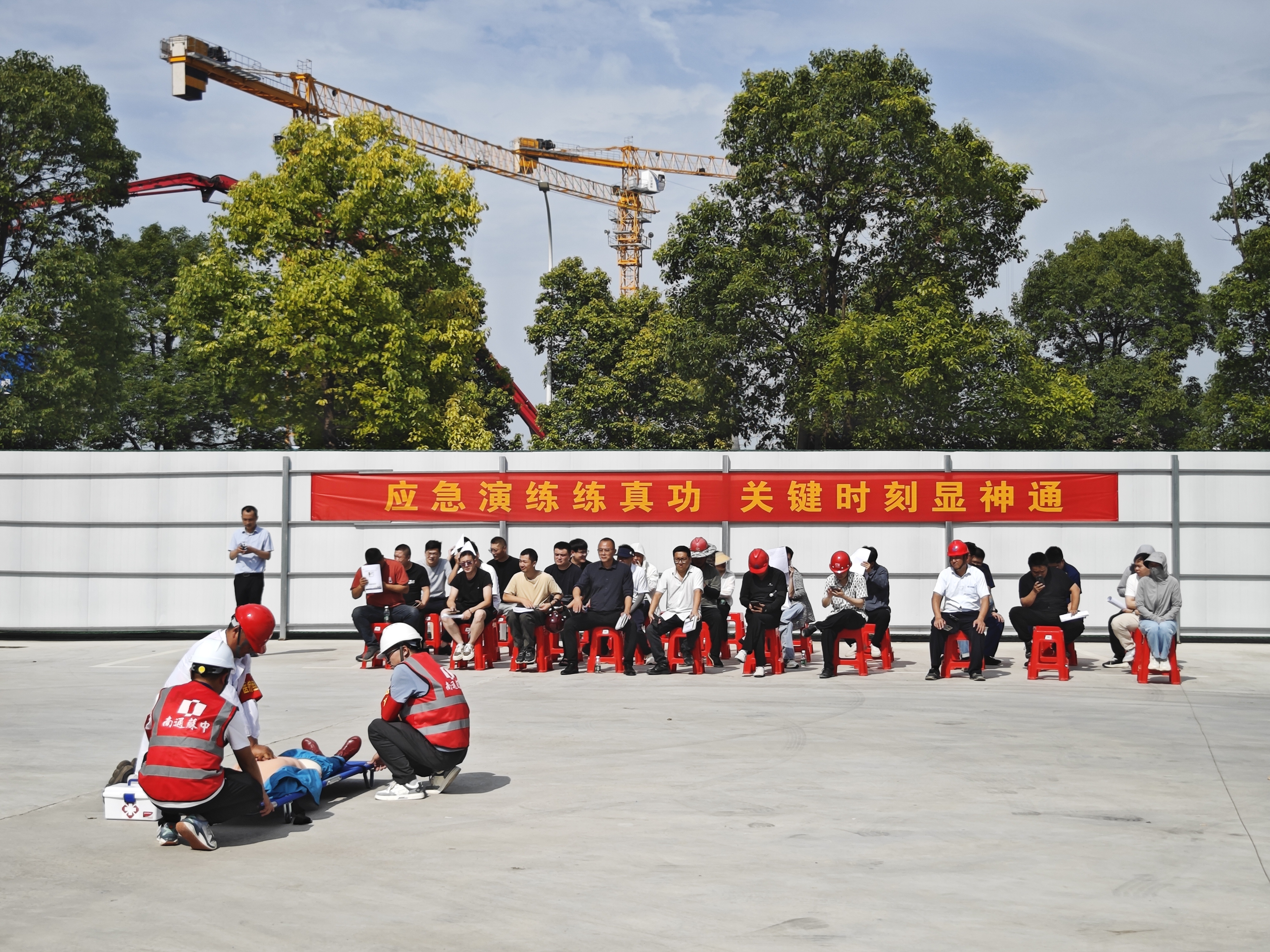 嚴陣以待,開啟安全大考:活動當天項目現場旌旗獵獵。“應急演練練真功,關鍵時刻顯神通”橫幅,彰顯著建筑人對安全生產的敬畏與決心。各應急小隊嚴陣以待、精神飽滿,以“來之能戰、戰之能勝”的姿態,迎接這場安全大考。這不僅是一次演練,更是項目日常應急管理的考核和公司安全文化的體現。