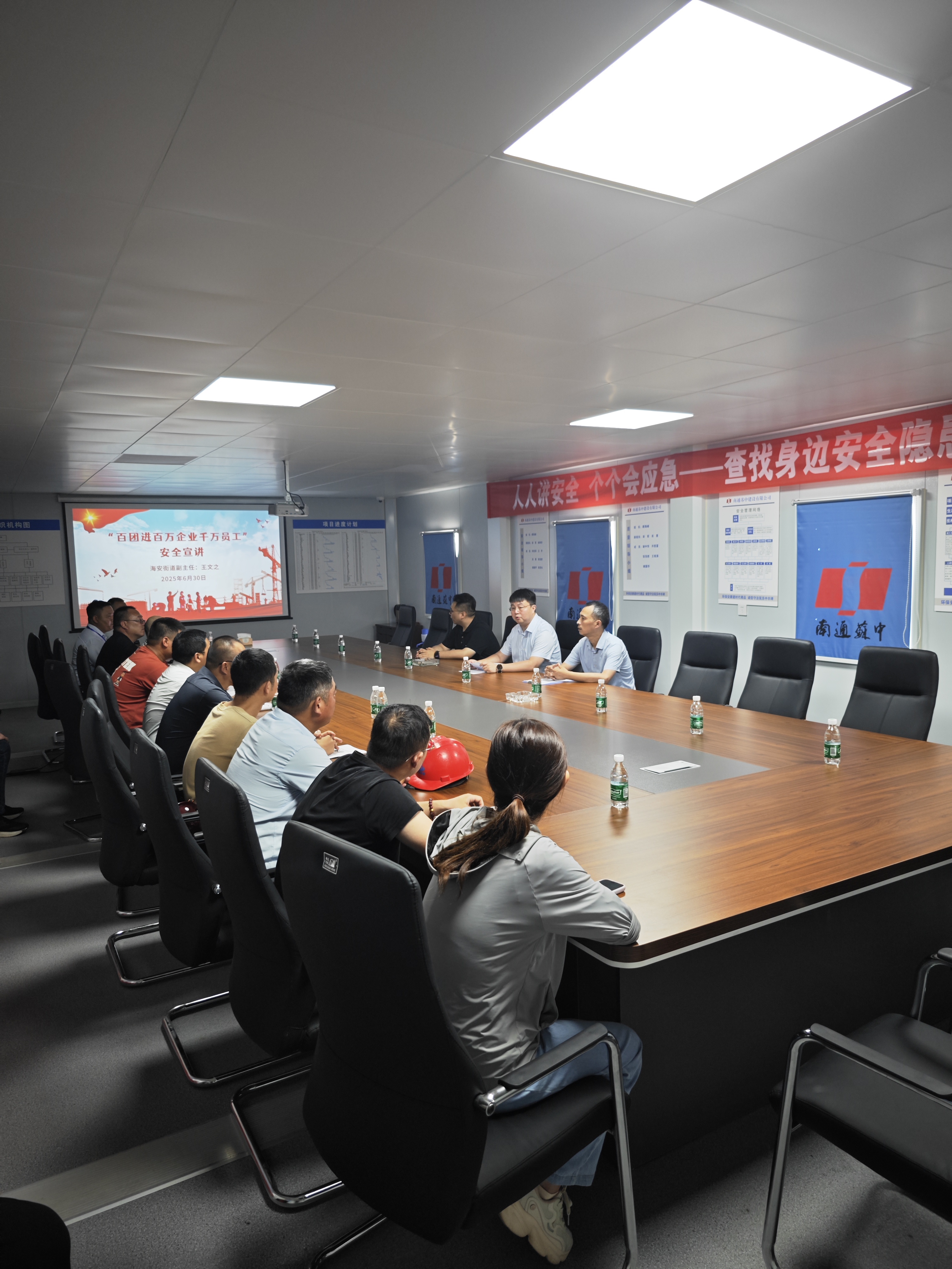 演練結束后,海安街道領導及各項目負責人移步至項目部會議室進行演練總結及安全宣講。