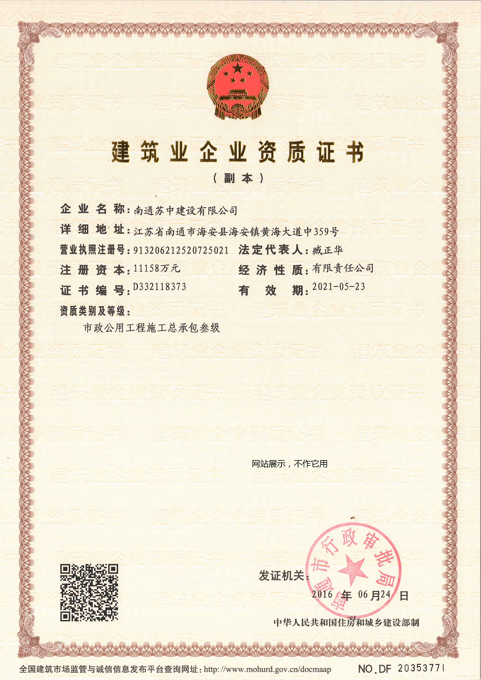 版權所有:南通蘇中建設有限公司 地址:江蘇海安黃海大道中359號 郵編:226600